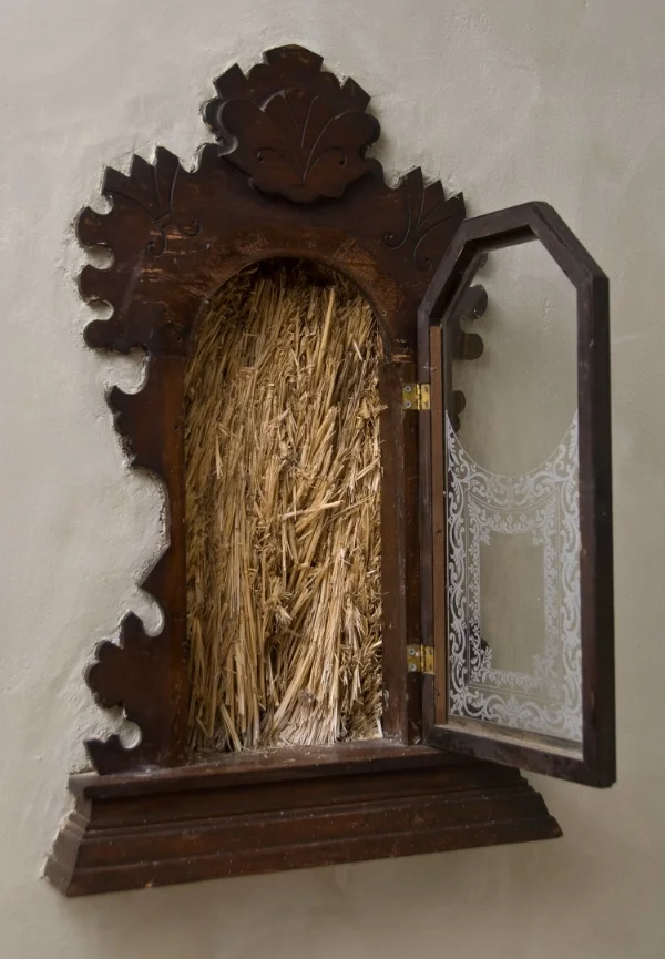 My inspiration for these two: something called a "truth window," a deliberate exposure of what's inside a wall, such as hay bale insulation.